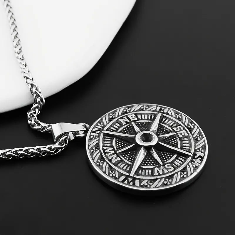 Retro Compass Necklace With Water Drill For Men